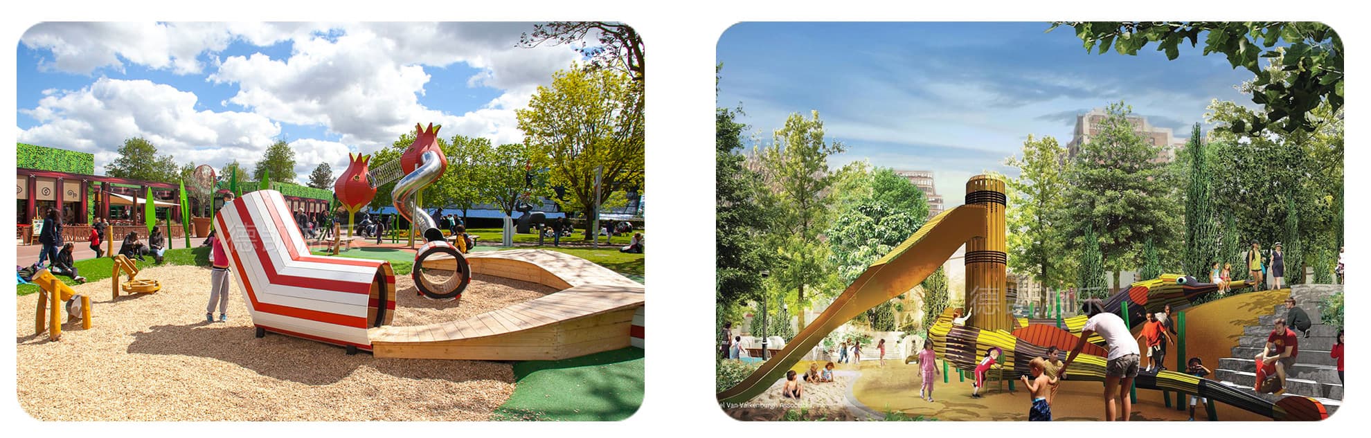 所以德凱設計團隊總是帶著一個問題去設計整個游樂場項目。孩子們想從這個游戲空間中得到什么?我們的目標是為每個孩子提供參與和愉悅的機會,盡可能提供游戲價值。隨著我們建立的每個新的游戲空間,我們傾聽并向我們創造的孩子們學習。德凱游樂擁有一支專業的場地規劃設計團隊,從實地測量到場地功能區劃,再從CAD制圖到3DMAX模型制作等每一個環節,工作人員都認真負責,場地規劃設計方案客戶滿意度高。每個游樂場設計都必須遵循六個設計原則: